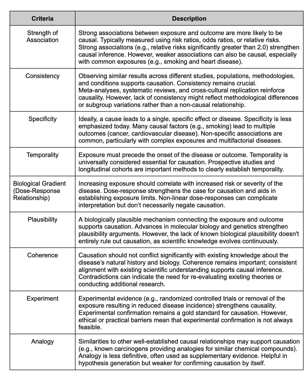 Shimonovich, M., Pearce, A., Thomson, H., Keyes, K., & Katikireddi, S. V. (2021). Assessing causality in epidemiology: Revisiting Bradford Hill to incorporate developments in causal thinking. European Journal of Epidemiology, 36, 873–887. https://doi.org/10.1007/s10654-020-00703-7