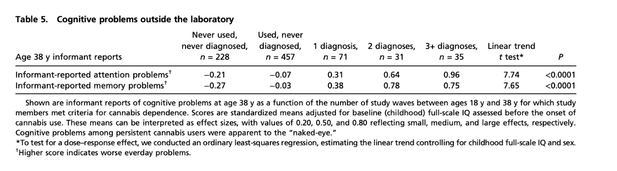 Meier, M. H., Caspi, A., Ambler, A., Harrington, H., Houts, R., Keefe, R. S., McDonald, K., Ward, A., Poulton, R., & Moffitt, T. E. (2012). Persistent cannabis users show neuropsychological decline from childhood to midlife. Proceedings of the National Academy of Sciences of the United States of America, 109(40), E2657–E2664. https://doi.org/10.1073/pnas.1206820109